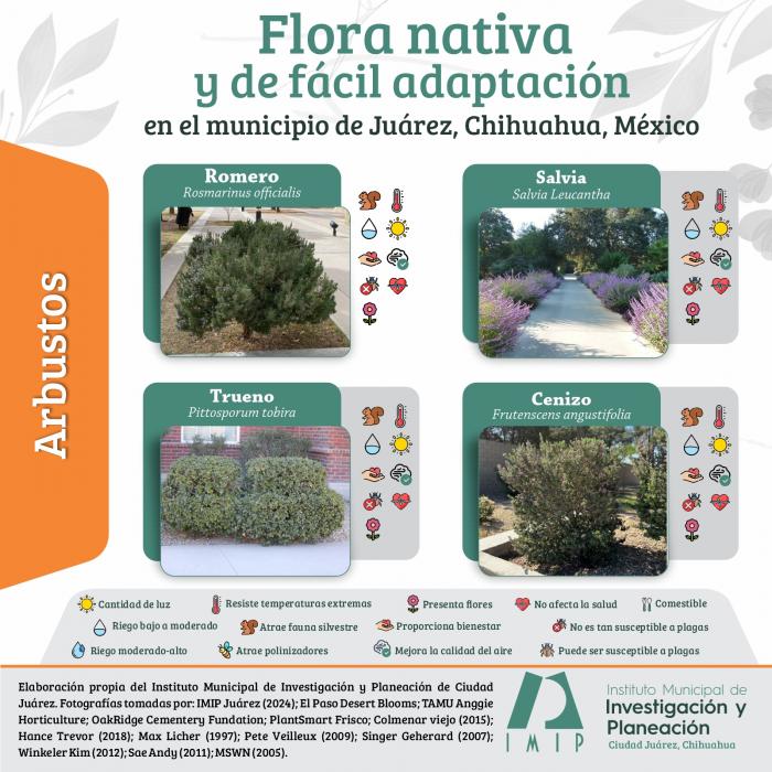 Con motivo del Día Mundial del Medio ambiente, les compartimos las siguientes infografías con la “Flora nativa y de fácil adaptación en el municipio de Juárez, Chihuahua, México”.